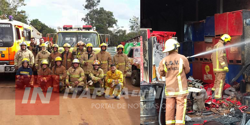 Tras recibir el pedido de auxilio acudieron al lugar integrantes del Cuerpo de Bomberos Voluntarios de Capitán Meza, quienes con el apoyo del Bomberos de Edelira y de Natalio, sofocaron el fuego de forma inmediata.