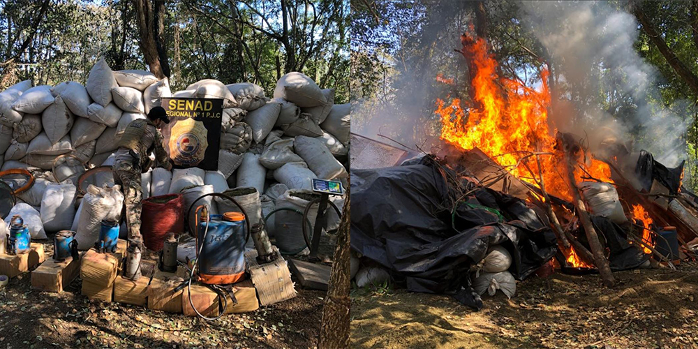 El lugar sería uno de los principales esquemas de producción y acopio de drogas destinadas a facciones criminales del Brasil, reporta la SENAD. El complejo contaba con 9 campamentos y 3 depósitos narcos bien equipados.