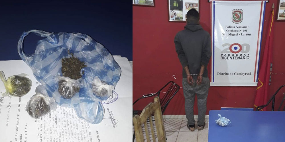 Un joven identificado como Richard Servián Cáceres de 22 años domiciliado en el barrio La Amistad de Cambyretá, fue aprehendido por efectivos de la Comisaría 101 del barrio San Miguel por tenencia de marihuana.