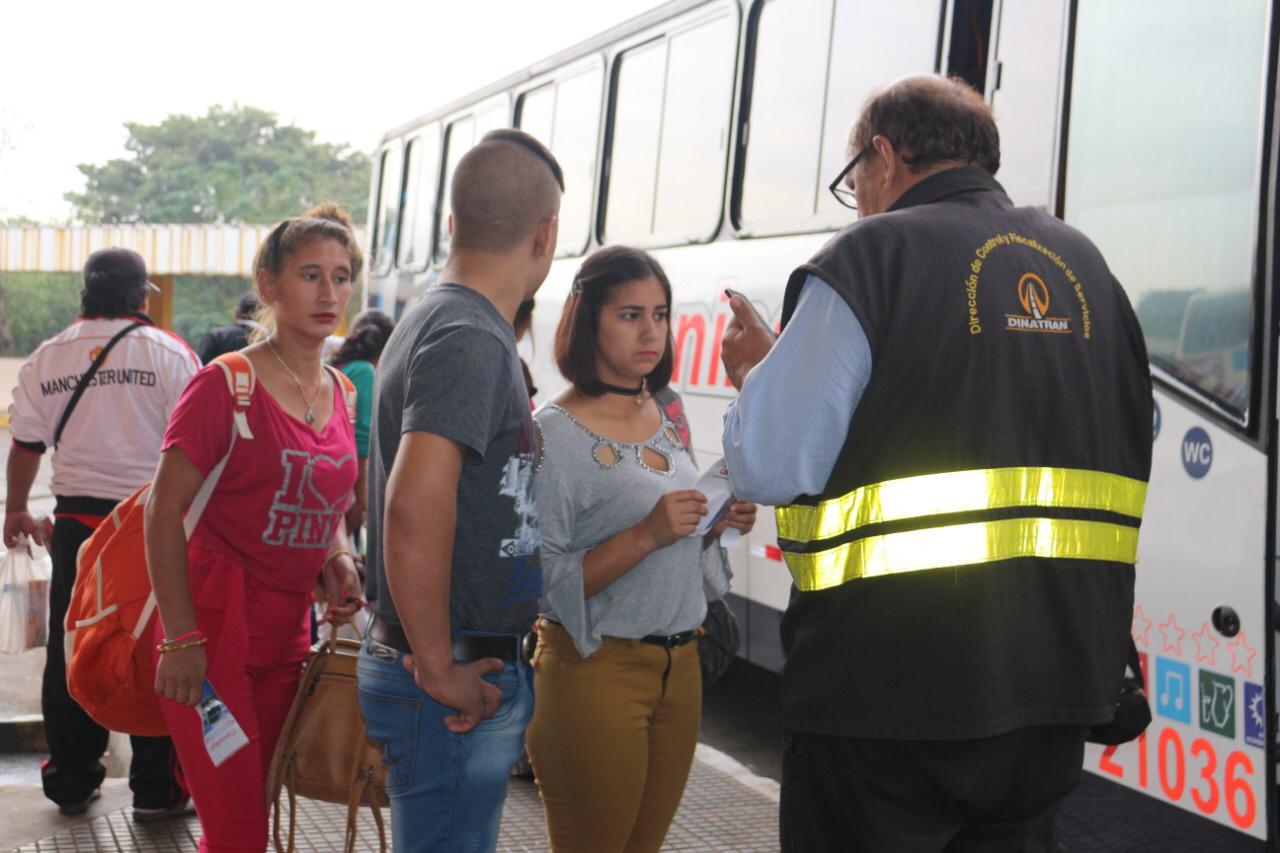 Las fiscalizaciones se realizan en la Terminal de Asunción por una unidad móvil de la Dinatran. Igualmente, el ente regulador tendrá unos 100 funcionarios desplegados en distintos puntos del país para los controles, según adelantó su director Juan José Vidal.
