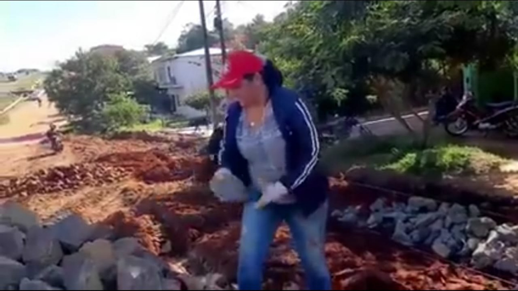 Esta mujer se gana la vida a «piedrazos» junto con su familia, ya que se dedica a hacer empedrados en la localidad de Dr. Juan Eulogio Estigarribia, departamento de Caaguazú. “No es que un hombre nomás puede hacer ese trabajo, una mujer también puede”, dijo la doña, quien con un quepis sobre su cabeza coloca piedras en las calles de su ciudad.