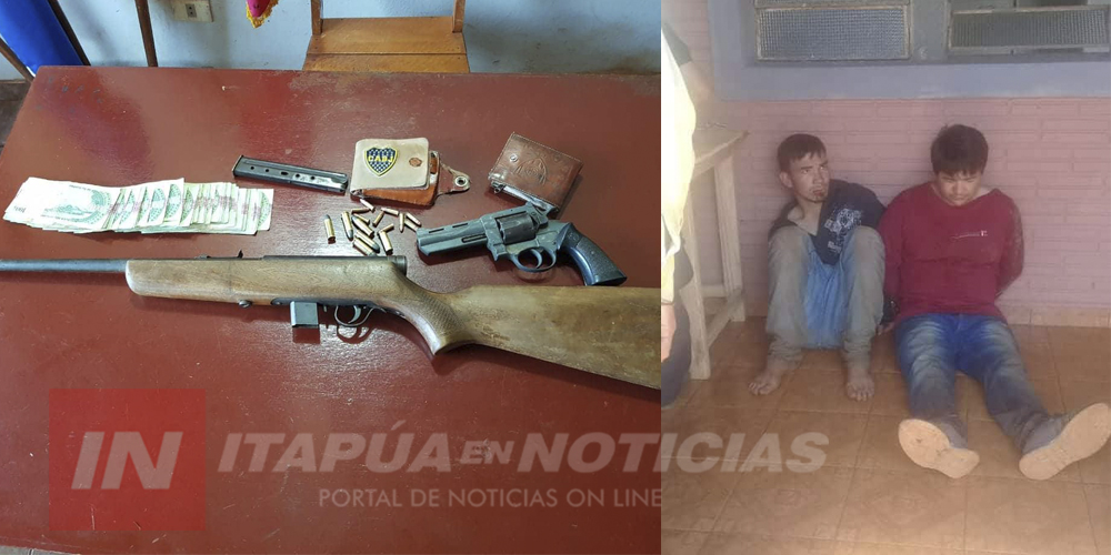 Los hombres fueron identificados como Lazareno Gabriel Caraballo, argentino de 27 años y Fernando Andres Britez de 23 años. Del poder de los mismo la policía recuperó la suma de Gs. 7.000.000, más un rifle calibre 22 propiedad de la víctima, así como revolver calibre 38 que portaban los supuestos autores.