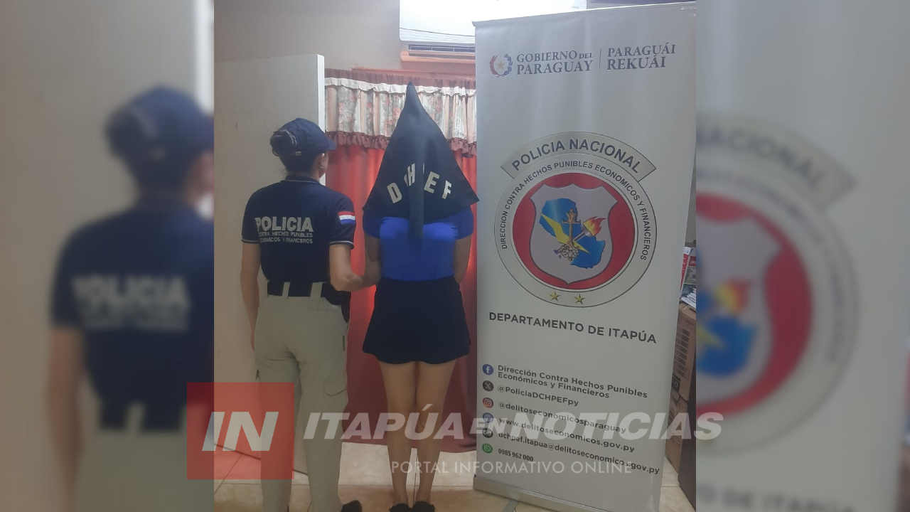 Agentes del Departamento de Hechos Punibles Económicos y Financieros de Itapúa procedieron este domingo 5 de octubre, alrededor de las 12:00 horas, a la detención de una mujer con orden de captura pendiente por un caso de estafa. El procedimiento se llevó a cabo sobre la avenida Luis Irrazábal, en la vía pública de esta ciudad.