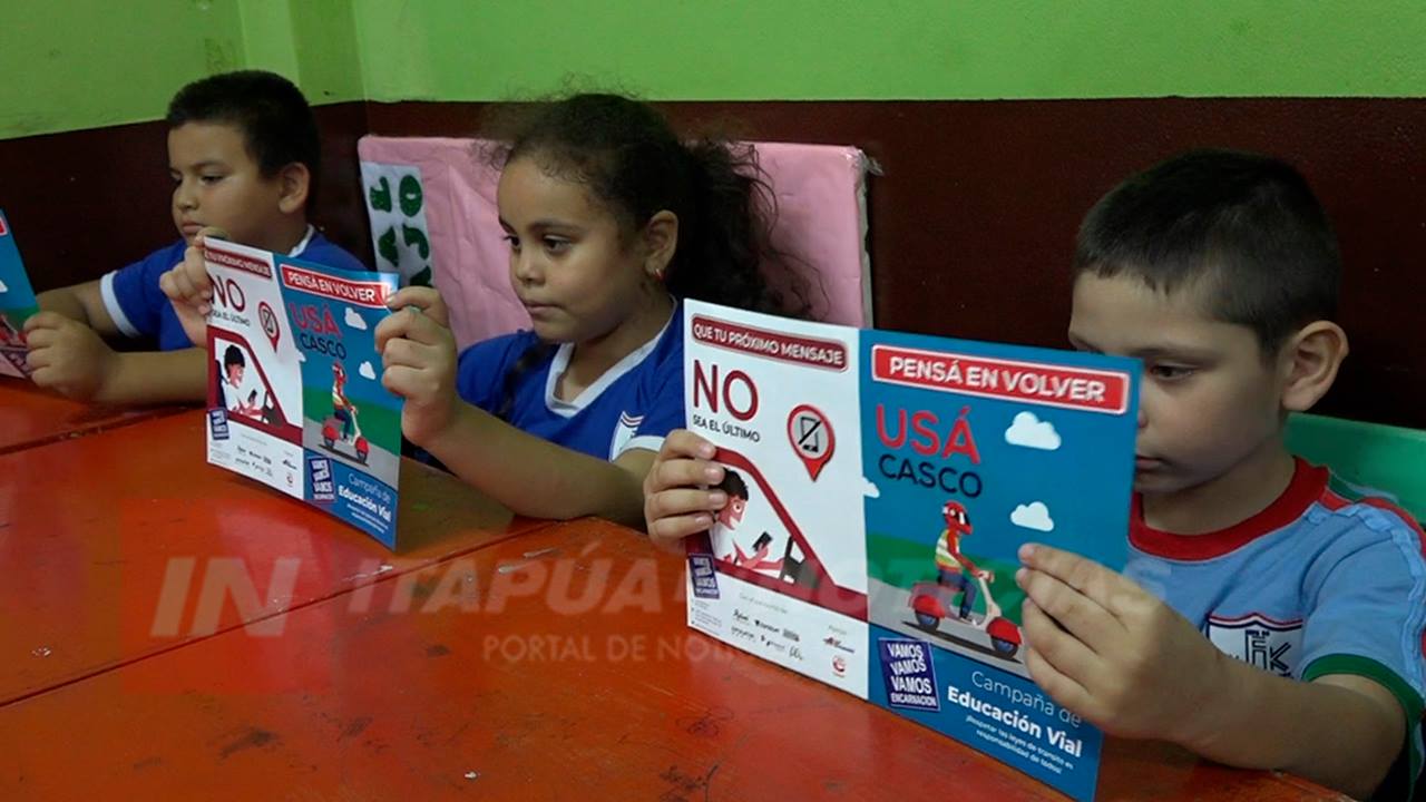 El agente de tránsito Hugo Benítez, explicó que actualmente cuentan con varios materiales para llegar con una didáctica especial a los niños en sus escuelas, donde hablan básicamente sobre la importancia del uso de casco en las motocicletas, el uso de cinturón de seguridad, las luces reglamentarias y por sobre todo, el respeto a las normas.