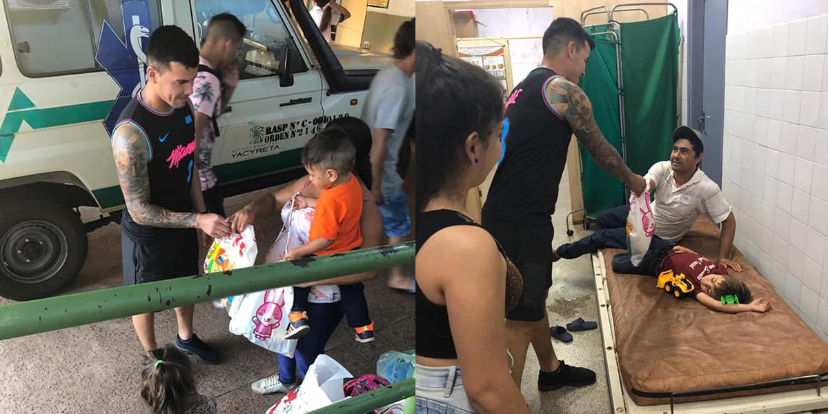 El emotivo gesto trajo alegría al interior del espacio de urgencias e internación pediátrica, donde el futbolista llegó dando un mensaje de aliento a los internados que se preparaban para pasar la medianoche en el referido centro asistencial.