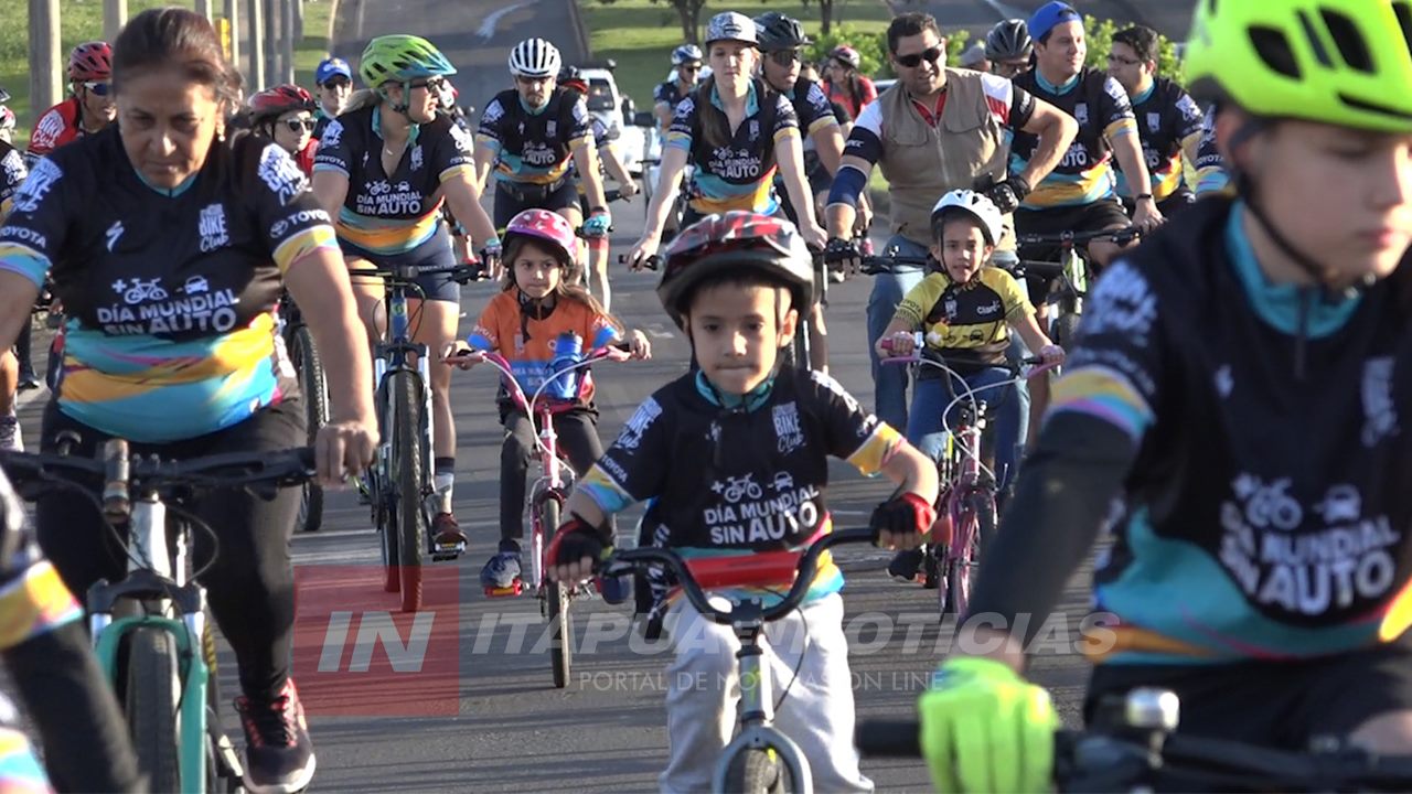 Las calles del centro de la ciudad de Encarnación se llenaron de ciclistas celebrando el Día Mundial Sin Auto, un evento que se viene realizando desde hace varios años de la mano de la empresa Consur Bike, uniéndose a un movimiento global que se celebra todos los años en coincidencia con el inicio de la Primavera.