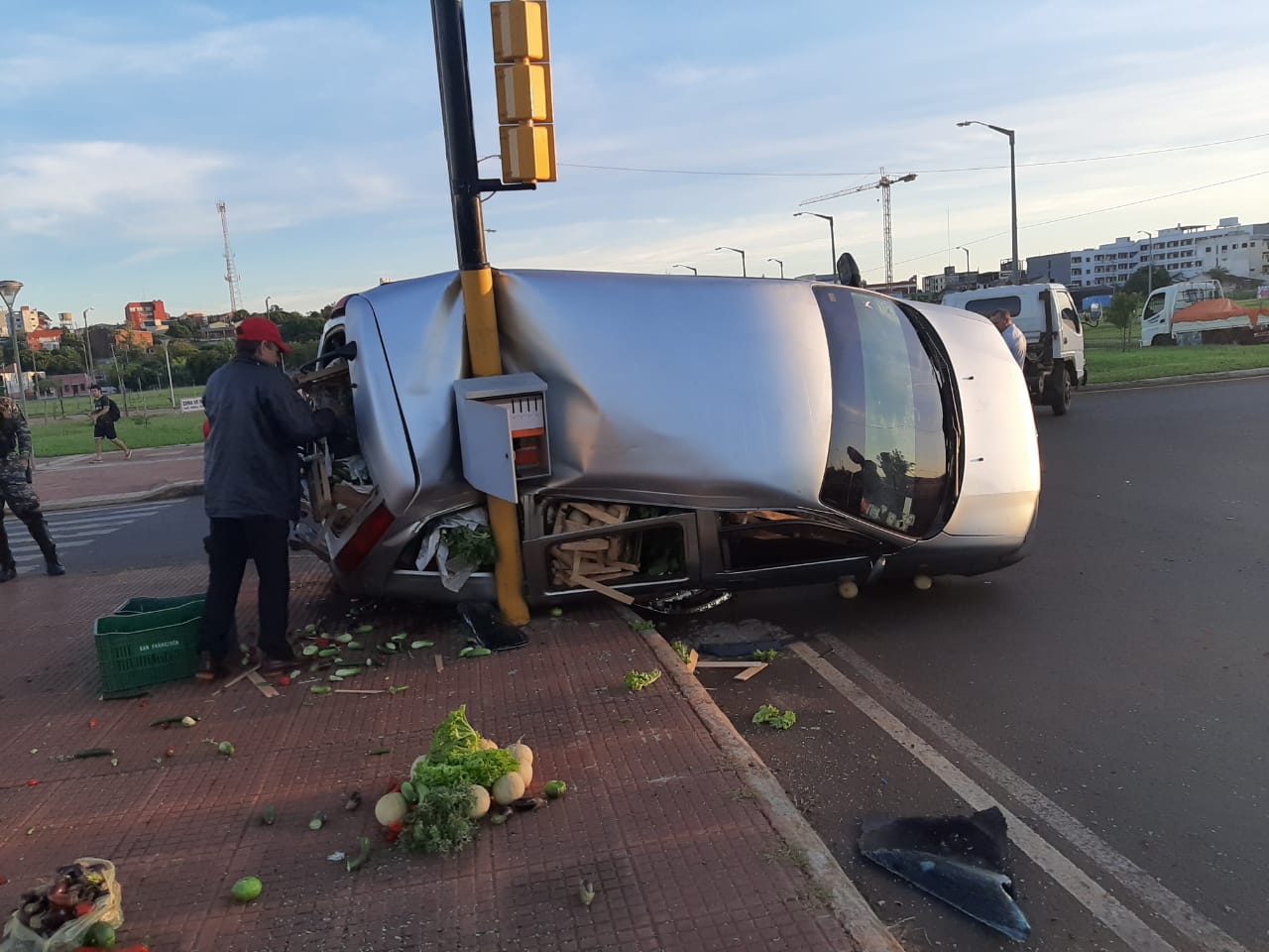 Según los efectivos de tránsito, el furgón circulaba por la Avenida Japón sobre el carril derecho y al llegar a la intersección con la Avenida Japón fue impactado por la camioneta S10 que circulaba sobre la calle Mcal. López. A consecuencia del impacto el furgón terminó incrustado contra la columna semafórica con importantes daños materiales en ambos rodados.