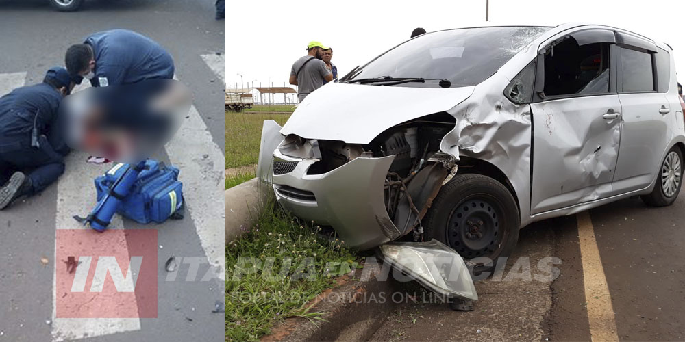 Estuvieron involucrados un automóvil Toyota Ractis guiado por Mirna Escobar y una motocicleta conducida por un hombre cuya identidad aún no ha sido determinada ya que tuvo que ser trasladado de urgencias hasta el Hospital Regional de Encarnación por una fractura expuesta en una de sus extremidades.