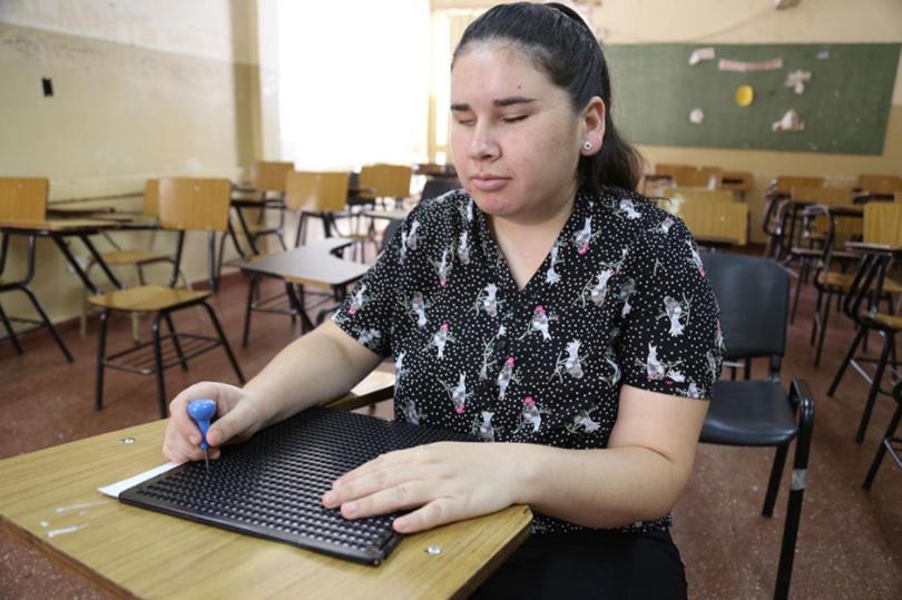 Un grabador en mano, un punzón con la regleta de Braille y una computadora. Con esas herramientas, Lucía Velázquez (29) incursionó por las sendas de la Licenciatura en Comunicación Social, carrera que está a pocas líneas de culminar, con la redacción de su trabajo final.