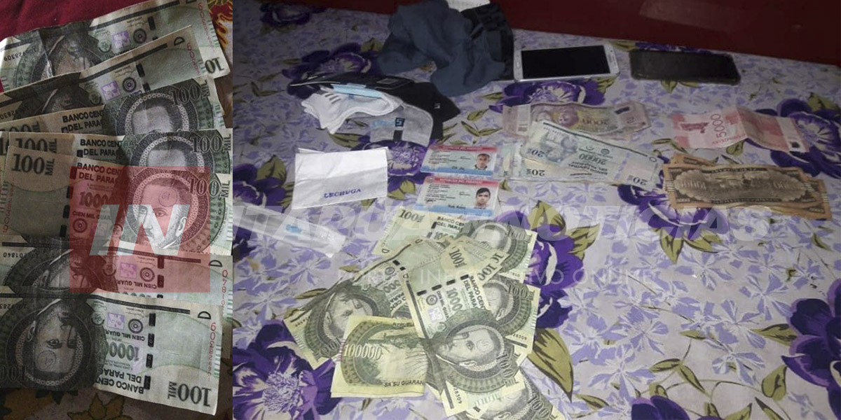 En poder de ambos sujetos se hallaron 7 billetes falsos de 100.000 Guaraníes y varios billetes legales que recibieron como vuelto de los billetes que ya recolectaron.