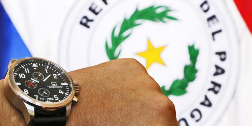 El primer domingo del mes de octubre de cada año, que será el próximo 6, se adelanta sesenta (60) minutos la hora oficial, en todo el territorio de la República del Paraguay, según establece el Decreto presidencial N° 1264 del 24 de febrero del 2014 y que aún sigue vigente.