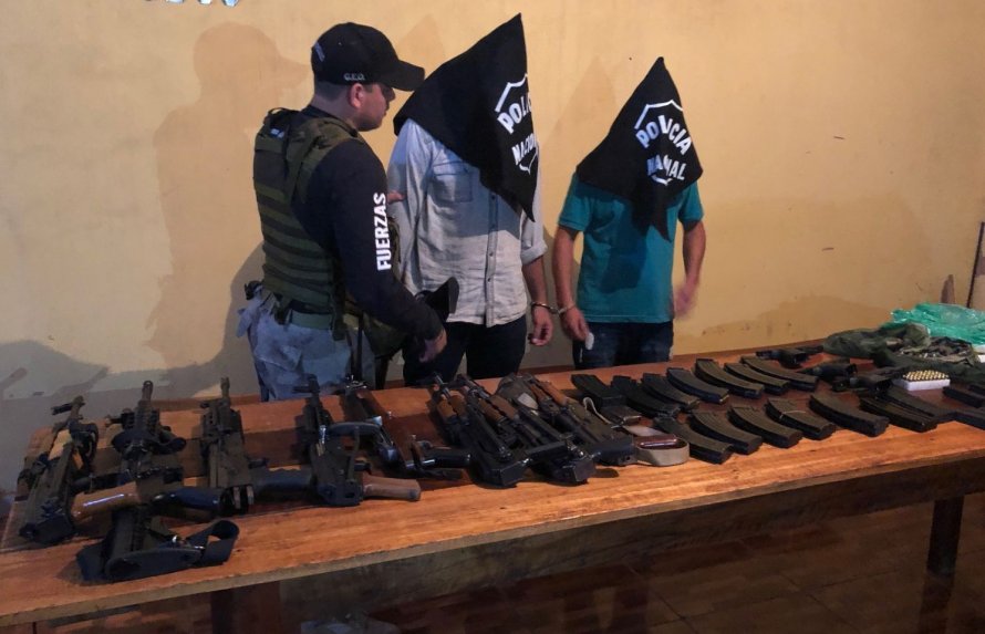 En total, la Policía recuperó seis fusiles calibre 7.62 y dos fusiles calibre 5.56, además de tres pistolas calibre 9 milímetros y 854 proyectiles. Los detenidos, Balderi Antonio Martins (30) y Adán Esmeraldo Jara Gauto (32), reconocieron que operaban para el grupo de Jonathan Giménez Grance (37), alias Cabeza, sobrino del extraditado Jarvis Chimenes Pavão.