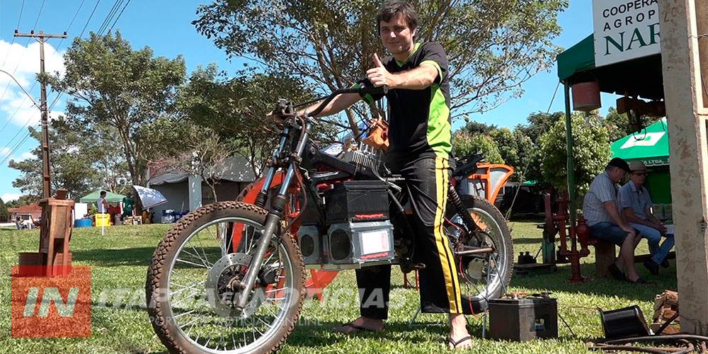 Utilizando un chasis de una moto y las ruedas originales, acondicionó un motor de un lavarropas impulsado por 4 baterías a través de un sistema electrónico, para fabricar en lo que quizás sea la primera moto eléctrica en el departamento de Itapúa y del país.