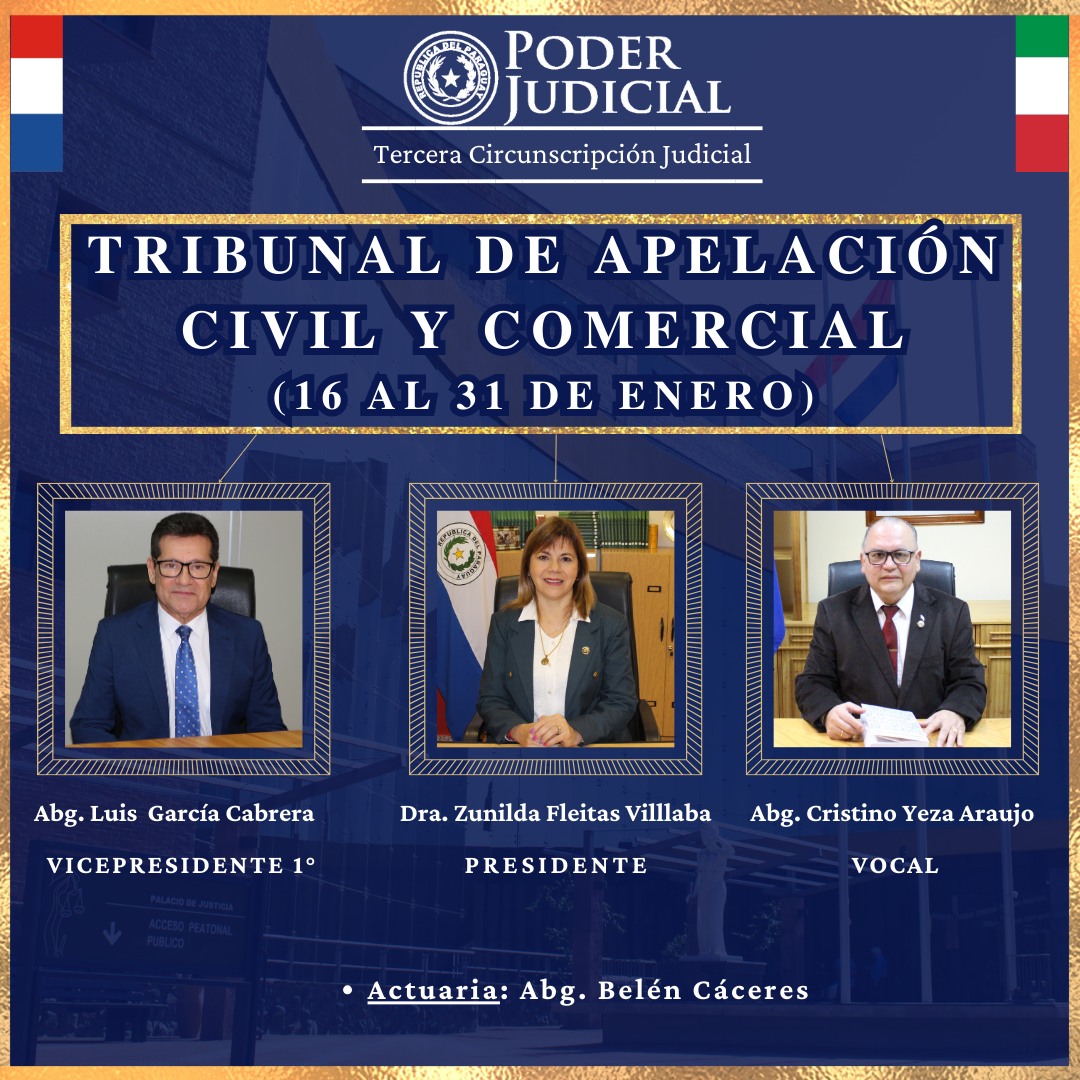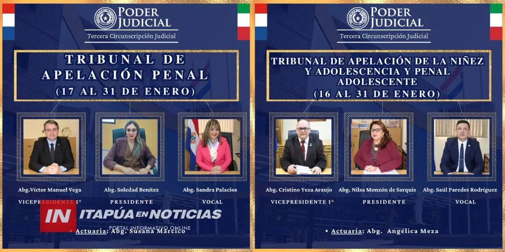 La Tercera Circunscripción Judicial informó a la ciudadanía la conformación de los Tribunales de Apelación que cumplirán funciones durante el período de Feria Judicial 2026, el cual se extenderá desde el 16 hasta el 31 de enero.