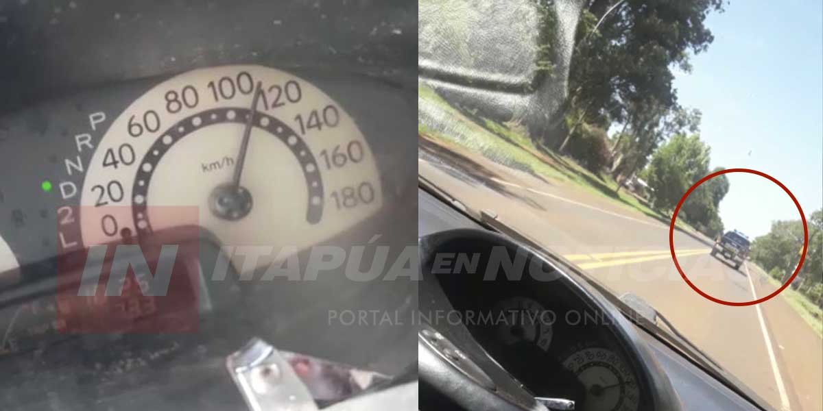 Una denuncia ciudadana de parte de un conductor que viajaba desde Maria Auxiliadora, distrito de Tomás Romero Pereira hacia Encarnación, captó con indignación como en un tramo del recorrido una patrullera oficial de la Patrulla Caminera circulaba a gran velocidad sobre la Ruta N° 6, tras adelantarsele en un tramo.