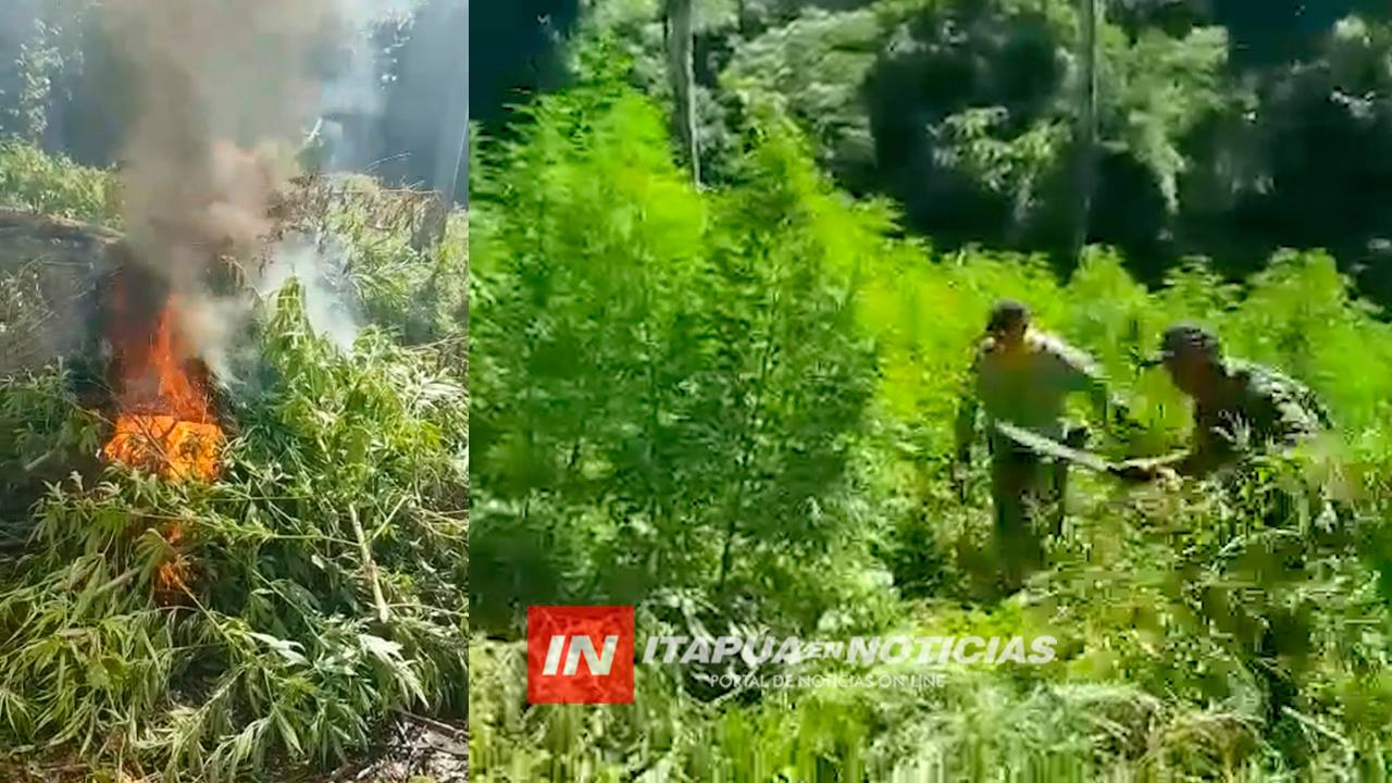 El Fiscal de la Unidad de Lucha contra el Narcotráfico, Enrique Díaz, junto a efectivos del Departamento de Antinarcóticos procedieron a la destrucción de dos hectáreas de plantaciones de marihuana en etapa de cosecha, en zona Taguató de la Reserva San Rafael, distrito de Alto Verá.