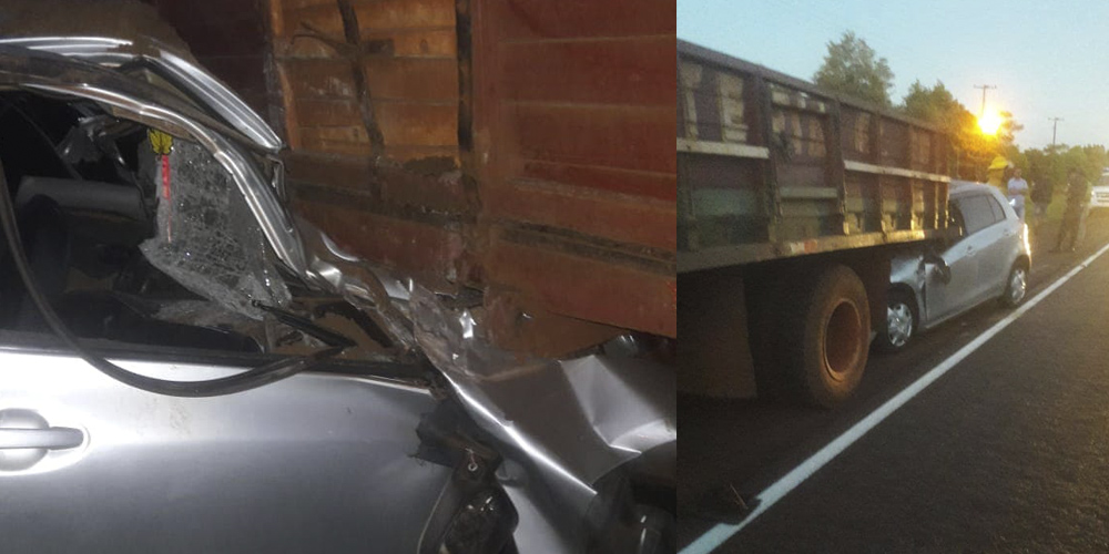 Aparentemente el camión que sería propiedad del concejal de Edelira, Pelayo Gómez, estaba trasladando materiales de construcción cuando habría sido embestido por el automóvil cuyos ocupantes se llevaron la peor parte.