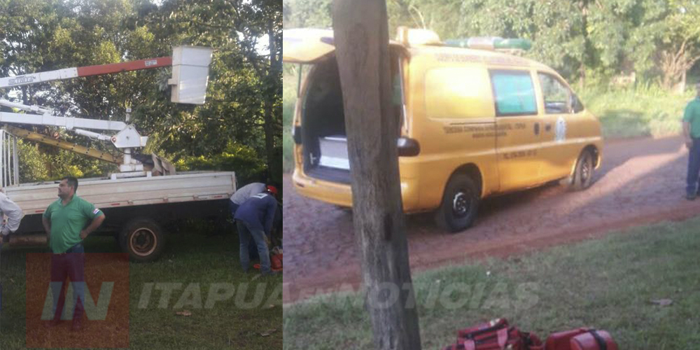 Un funcionario de una empresa contratada por la Administración Nacional de Electricidad, para realizar trabajos de mantenimiento y reparación de líneas, sufrió un accidente esta mañana en el barrio Virgen de Fátima del distrito de Tomás Romero Pereira.