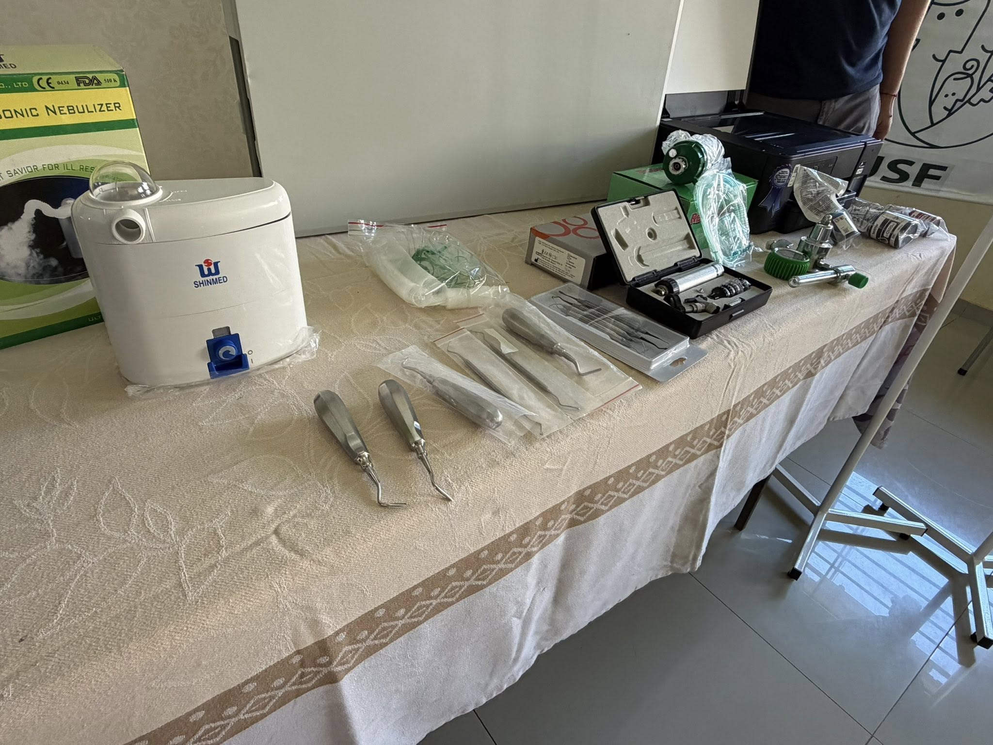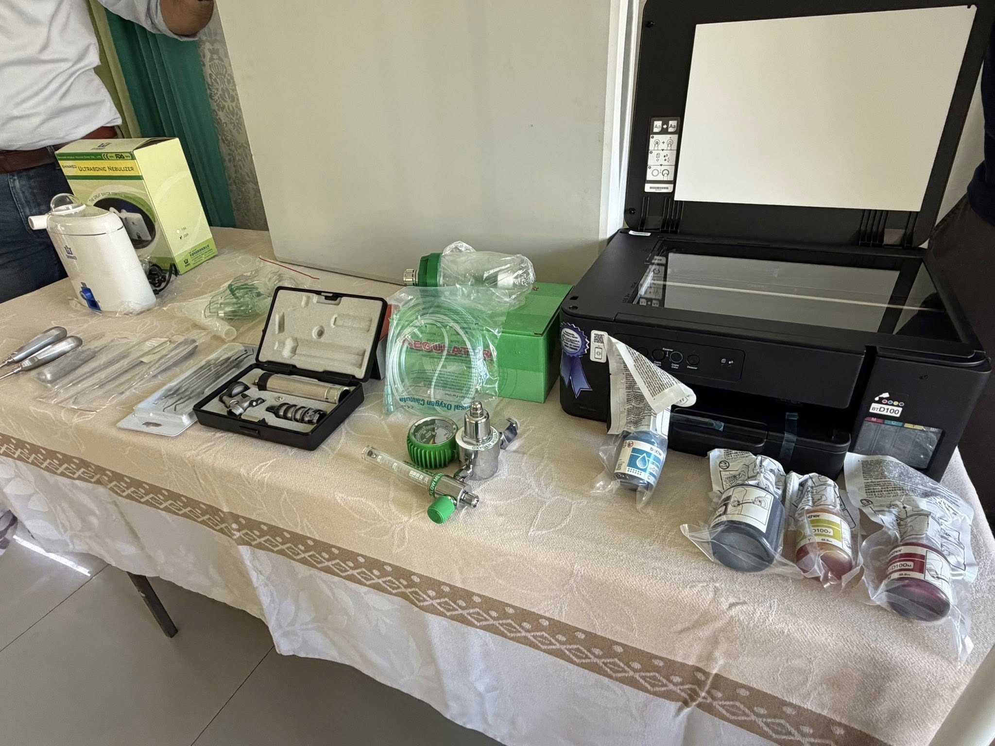 Durante la actividad se hizo entrega de diversos equipos e insumos esenciales para el funcionamiento del servicio, entre los que se destacan un otoscopio, nebulizador ultrasónico, manómetro de oxígeno, impresora a color, sillas tándem, saturómetros, así como equipamientos odontológicos y mobiliario básico.