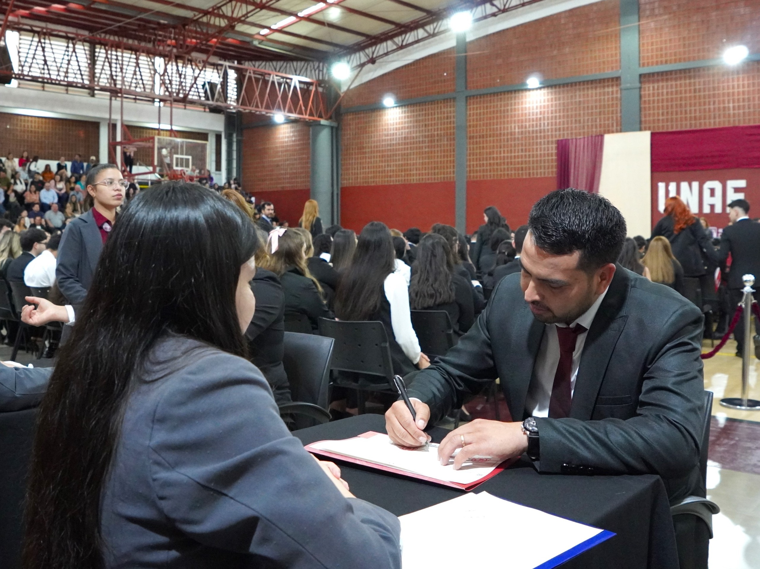 El emotivo acto se realizó en el Campus Urbano de la UNAE, presidido por la Dra. Nadia Czeraniuk, rectora de la institución, acompañada de los decanos y directores de carreras, quienes hicieron entrega de los títulos avalados por el Ministerio de Educación y Ciencias, que habilitan al ejercicio profesional en distintas áreas.