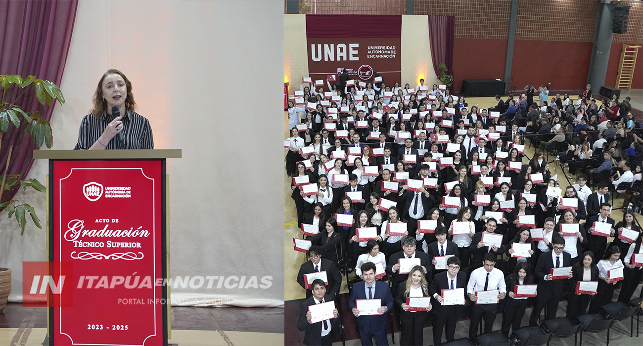 La Universidad Autónoma de Encarnación (UNAE) celebró el acto de graduación del Nivel Técnico Superior en sus modalidades presencial y online, con la participación de estudiantes provenientes de diversos puntos del país.