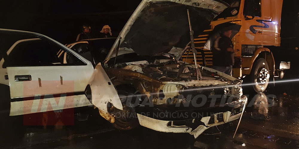 Posteriormente un camión Scania Chapa Nro AVX que venía detrás del automóvil impactó violentamente contra el mismo. En el automóvil estaban 2 ocupantes identificados como Hugo Gamarra González de 40 años, acompañado de Luz María Santacruz de 18 años quienes fueron trasladados de urgencia hasta el Hospital Regional de Encarnación para ser asistidos.