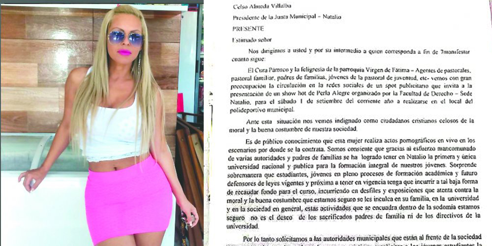 IGLESIA DE NATALIO QUIERE PROHIBIR SHOW DE PERLA ALEGRE