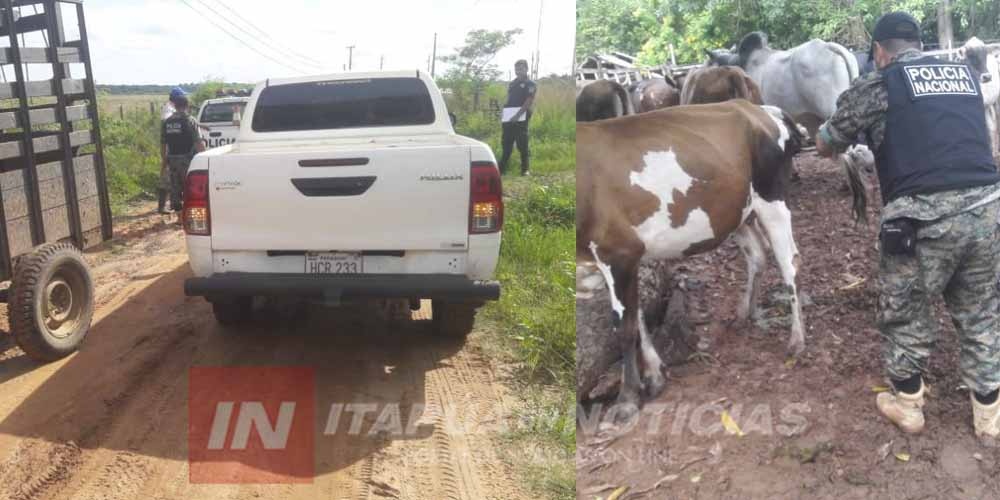 Efectivos policiales de la Comisaría 31 de José Leandro Oviedo junto los agentes de la División de Lucha contra el Abigeato de Itapúa incautaron este miércoles un ejemplar de desmamante, orejano sin marca, ni señal que era transportado hacia un establecimiento de la zona de Gaona Cue, distrito de José Leandro Oviedo.