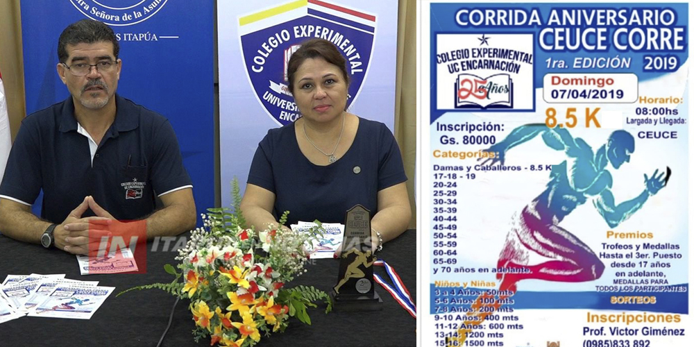 En la mañana de este martes se llevó a cabo el Lanzamiento de la Corrida Aniversario “CEUCE CORRE”, actividad a desarrollarse este domingo 7 de abril desde las 08:00hs. frente a la sede del importante colegio encarnaceno.