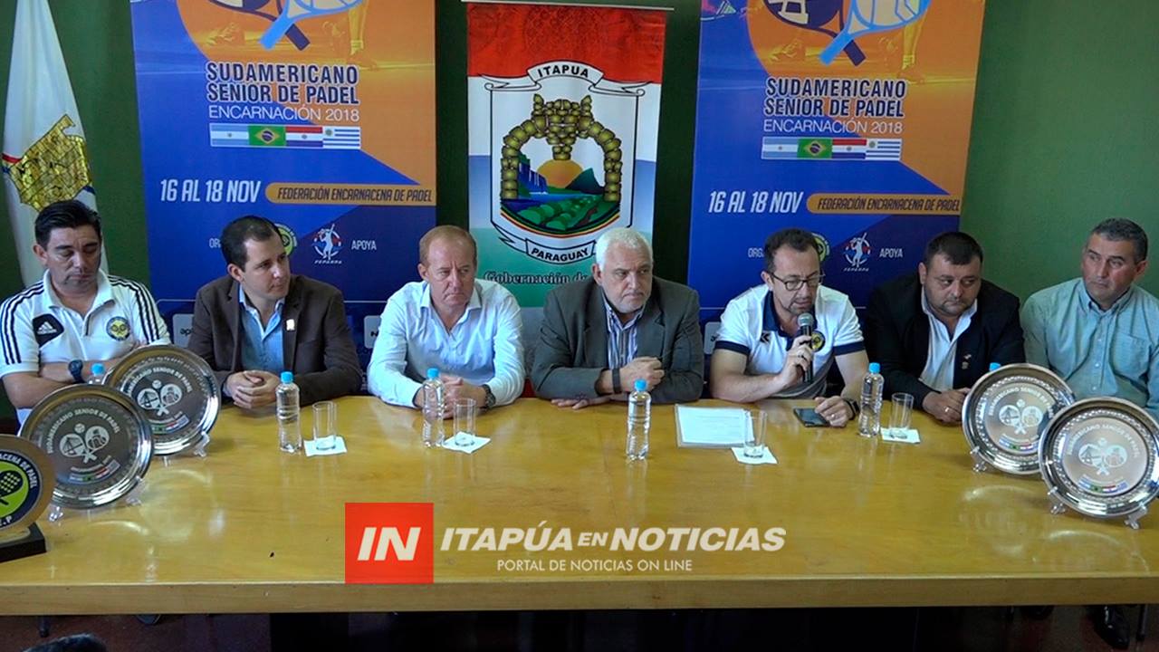 Del 16 al 18 de noviembre Itapúa es sede del Sudamericano Senior de Pádel, el evento fue lanzado este viernes en sede de la Gobernación de Itapúa hasta donde llegaron integrantes de la Federación Encarnacena de Pádel (FEP), así como autoridades distritales y departamentales.