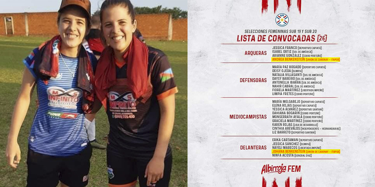 Las mellizas Andrea y Johana Benkenstein pertenecientes a los registros del Club Unión de Caronay (Liga Alto Verá – Itapúa); una vez más fueron llamadas a la Selección Paraguaya.