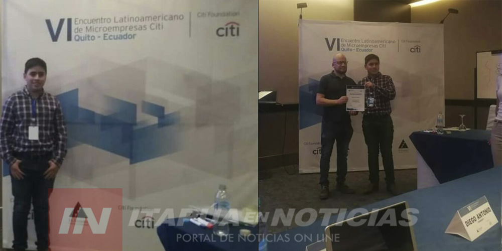 Diego Castro Joven emprendedor 2017 cliente exitoso del Crédito Agricola de Habilitación ganador del premio CITI ,participa del VI encuentro Latinoamericano de Micro empresario CITI que se lleva a cabo en Quito Ecuador del 12 al 16 de noviembre 2018.