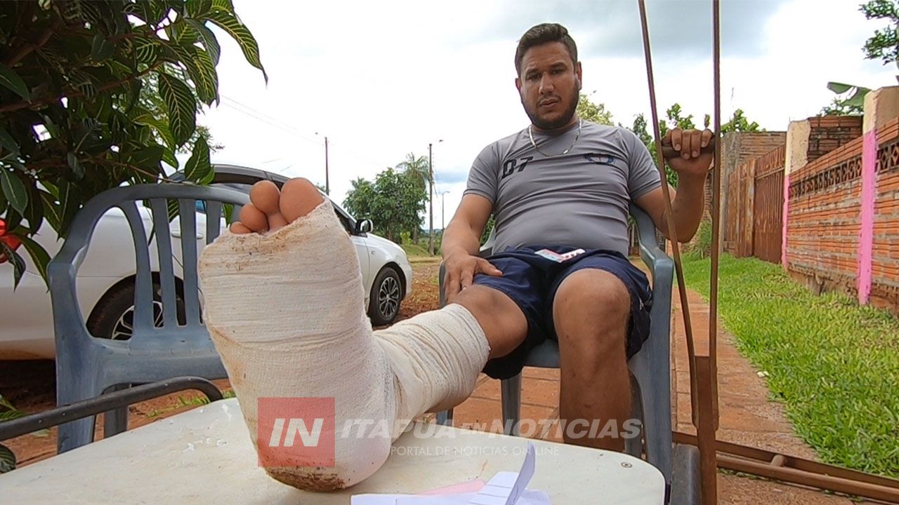 El joven contó que 15 días atrás, sufrió un accidente cuando subía unos escalones para ingresar a la vivienda que alquila en el Circuito Comercial.