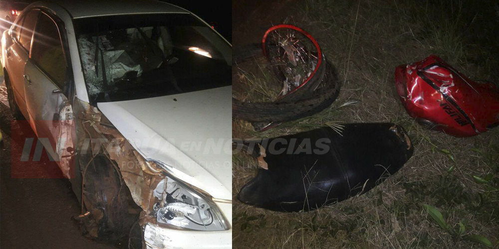 Otro grave accidente de tránsito se registró hace instantes sobre la Ruta 6 a la altura de Cruce Ayala distrito de Tomás Romero Pereira. Un automóvil guiado por Cornelio Emilio Weber (44) domiciliado en la Colonia Nueva Aurora de San Rafael del Paraná, impactó en forma frontal contra una motocicleta que era conducida por Ignacio Ferreira (27) cuyos demás datos se desconoce.