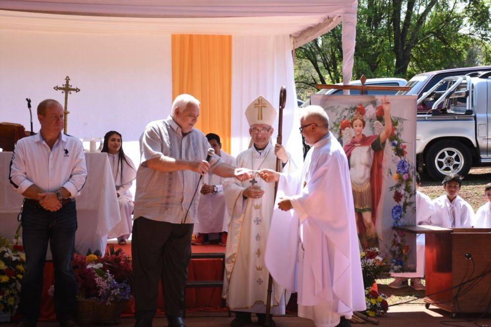 El Gobernador de Itapúa, Abg. Juan Alberto Schmalko, participó de la conmemoración central de la Fiesta de San Miguel Arcángel, en el distrito de Cambyretá que fue concelebrado por el Obispo de la Diócesis de la Santísima Encarnación, Monseñor Francisco Javier Pistilli y por el Párroco local, Padre José Orzechowski.