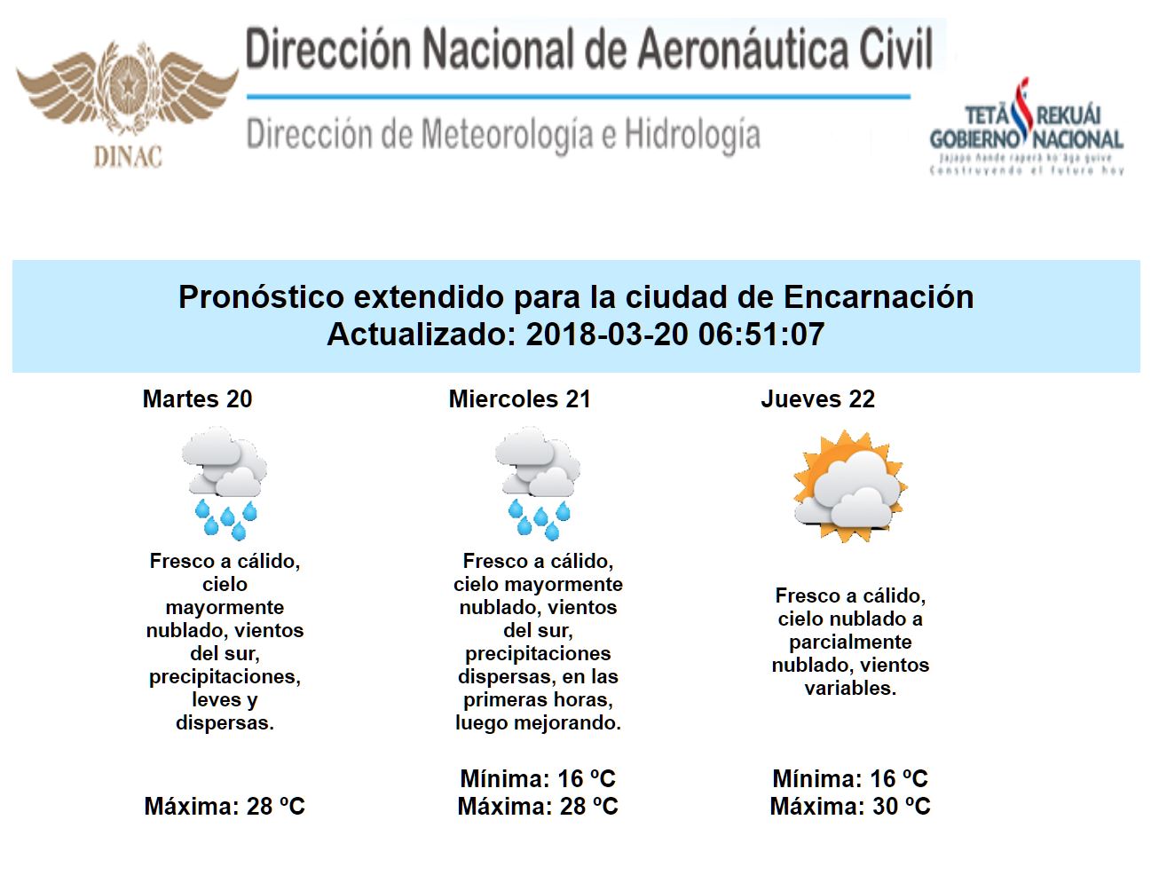 En cuanto al ambiente, se espera un ambiente cálido con temperaturas máximas entre los 27°C a 29°C en los departamentos del centro y sur del país, mientras que en el este y norte las temperaturas estarían en torno a los 31°C a 33°C, generando un ambiente caluroso en horas de la tarde, condiciones que serían similares para el día de mañana.