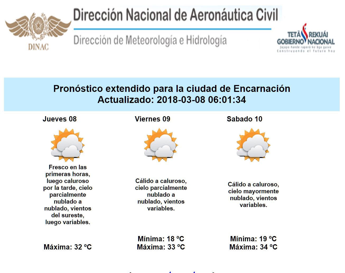 Para la jornada de hoy jueves a nivel país la probabilidad de precipitaciones se mantendrá baja a excepción del extremo norte del territorio nacional en donde podrían registrarse lluvias en forma dispersa acompañadas de ocasionales tormentas eléctricas.