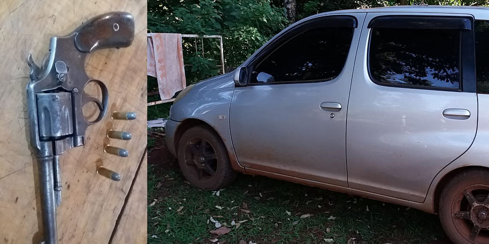 Según el informe policial, el mismo transitaba en un automóvil Toyota sin chapa, al ser requerido por los documentos del rodado que no poseía, se procedió al cateo del mismo, encontrándose de su interior un revólver y varios proyectiles.