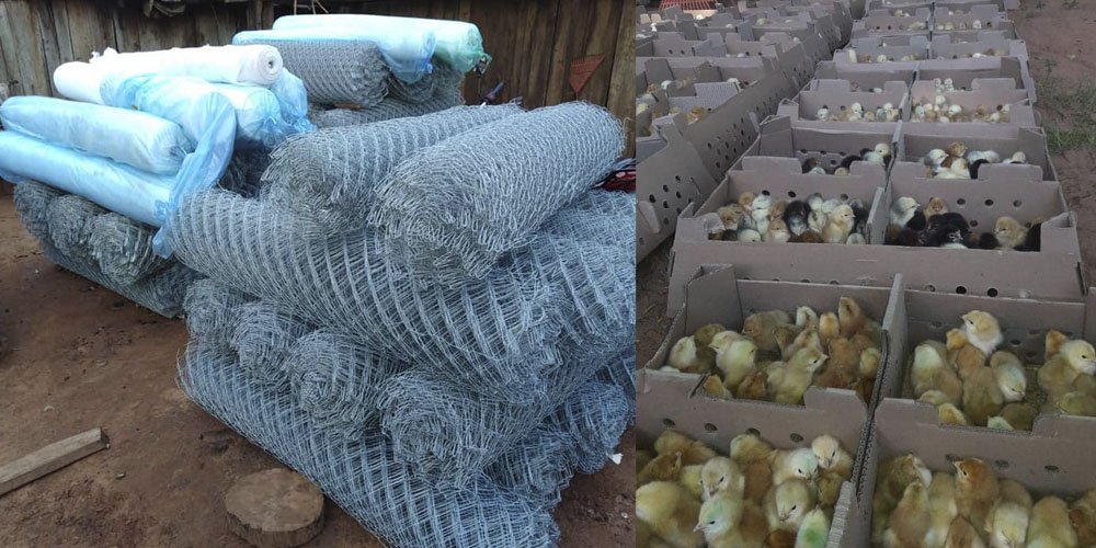 Estos insumos consisten en 250 pollitos de la raza doble propósito, 44 vaquilla de la raza mejorada Jersey mezcla cebú (que ya fueron entregados unos meses atrás con un valor total de los entregados de Gs. 247.388.000), 450 kg de balanceados iniciador, 1450 kg de la balanceados crecimiento y 900 kg de balanceados postura, 10 unidad de Campana Calefactora, 10 kits de sanitacion para aves, 10 bebederos, 10 comederos, 43 rollo de tejido de alambre de 2×2 x1.50 x 25 mts, 74 chapa zinc de 2,44 mts de largo por 0,90 cm de ancho, 77 rollo de alambre acerado de 1000 mts, 21 Forrajera de 2 HP, 20 desmalezadora huswarna, 5 pulverizadora yacto, 4 sembradora matraca, 5 carretilla, 4 tanque de fibra de vidrio de 500 lts, 4 bomba de agua, y 92 paquete de clavo para chapa.
