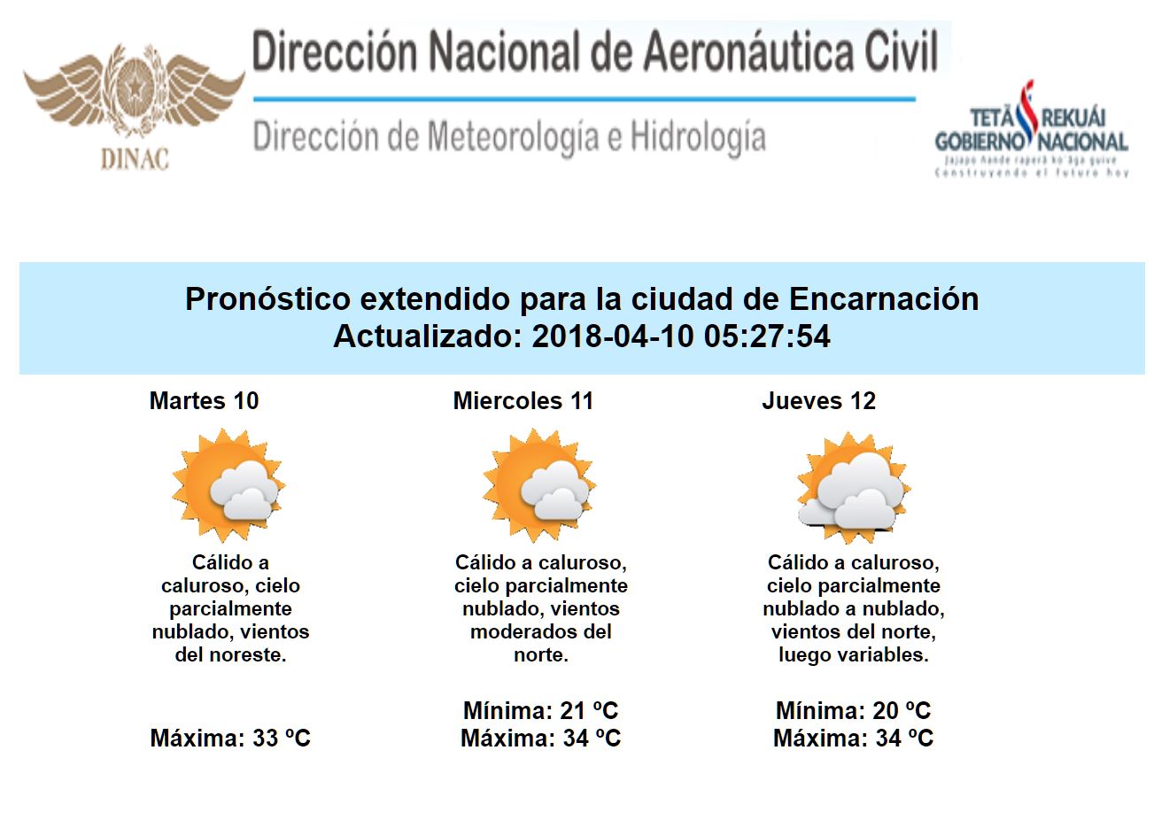 Los días se presentarían con intervalos de sol y nubes y vientos que serían del sector norte, por lo que el ambiente se mantendrá cálido durante las mañanas y las noches: tornándose más calurosos en horas de la tarde en gran parte del territorio nacional, inclusive en el Chaco el ambiente seria extremadamente caluroso.