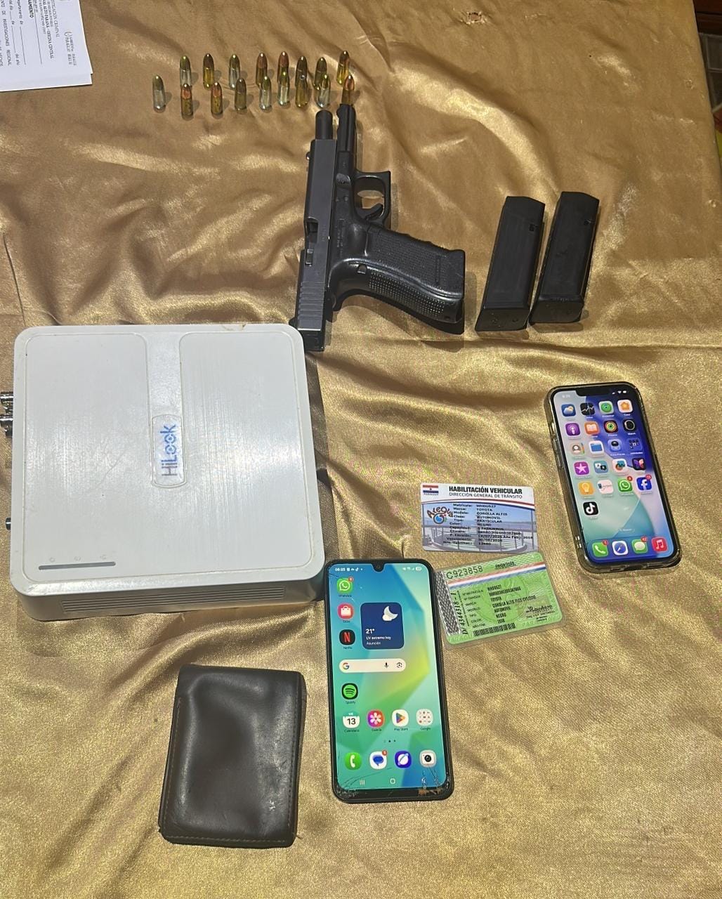 El octavo procedimiento se efectuó en una vivienda del distrito de San Juan del Paraná, donde fue detenido Aldo Ramón Martínez Pintos, de 37 años. En el lugar fueron incautados una pistola Glock con serie ADAC646, dos cargadores, 17 cartuchos, dos teléfonos celulares y un DVR marca HiLook.