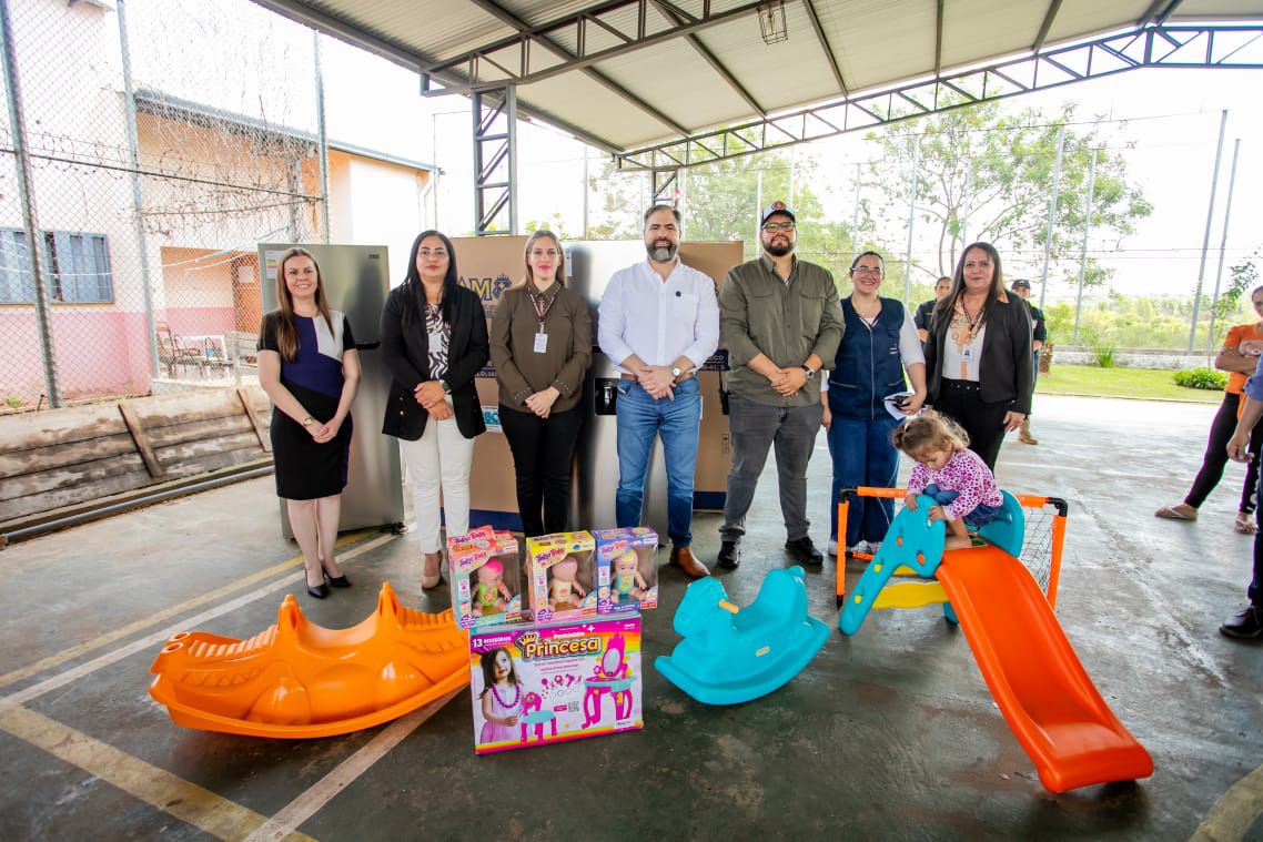 Durante el evento, se realizó una donación de heladeras y juegos temáticos por parte del Ministerio de Justicia y de la señora Shirley Santos de Benítez, presidenta de la Fundación “Yo elijo ayudar”. Los juegos serán incorporados al parque infantil del Centro Educativo “Color Esperanza”, y las heladeras mejorarán el almacenamiento de alimentos y medicamentos.