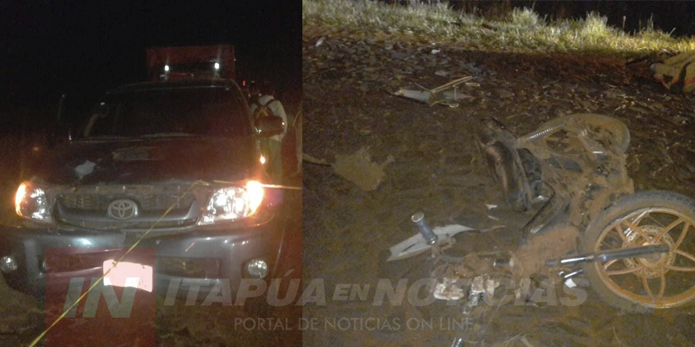 Un fatal accidente de tránsito se registró ayer en horas de la noche en el camino principal de Obligado km 14. Involucró a una motocicleta guiada por Claudio Lucillo Link Marth y una camioneta que estaba al mando de Viviana Betty Wanderer de Link.