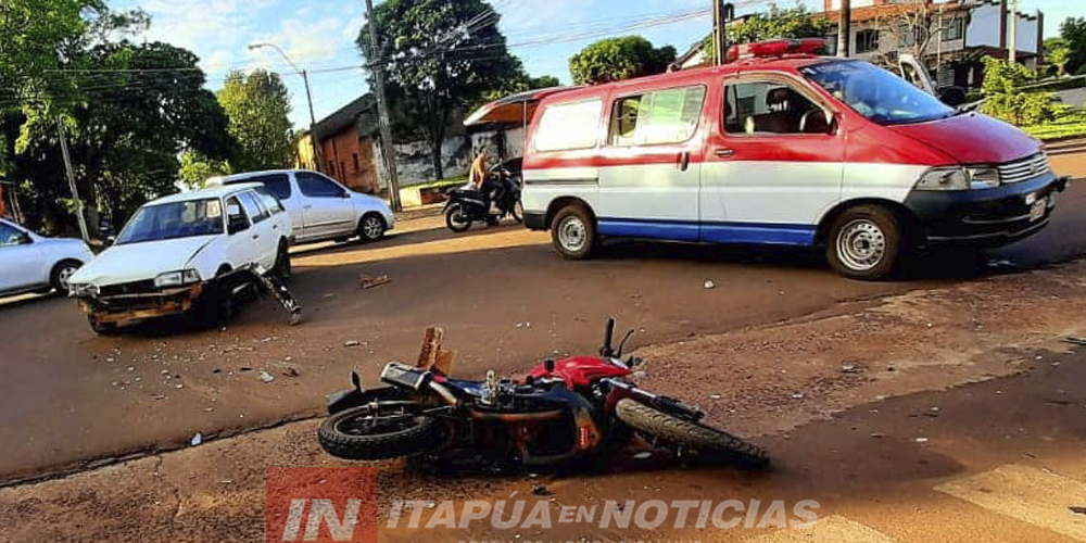 Se trata de Sergio Melgarejo Cardozo quien fue asistido por Bomberos Voluntarios de esta ciudad hasta el Hospital Distrital de Coronel Bogado. El mismo colisionó contra un automóvil al mando de Roberto Riquelme quien resultó ileso del percance.