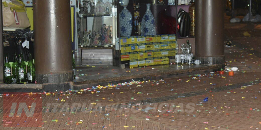 En estas condiciones quedaron varias calles del centro de la ciudad de Encarnación luego de los juegos de carnavales de ayer. Una de las arterias más afectadas fue Mariscal Estigarribia en inmediaciones del Centro Regional de Encarnación, donde una gran cantidad de jóvenes estuvieron jugando durante todo el día.
