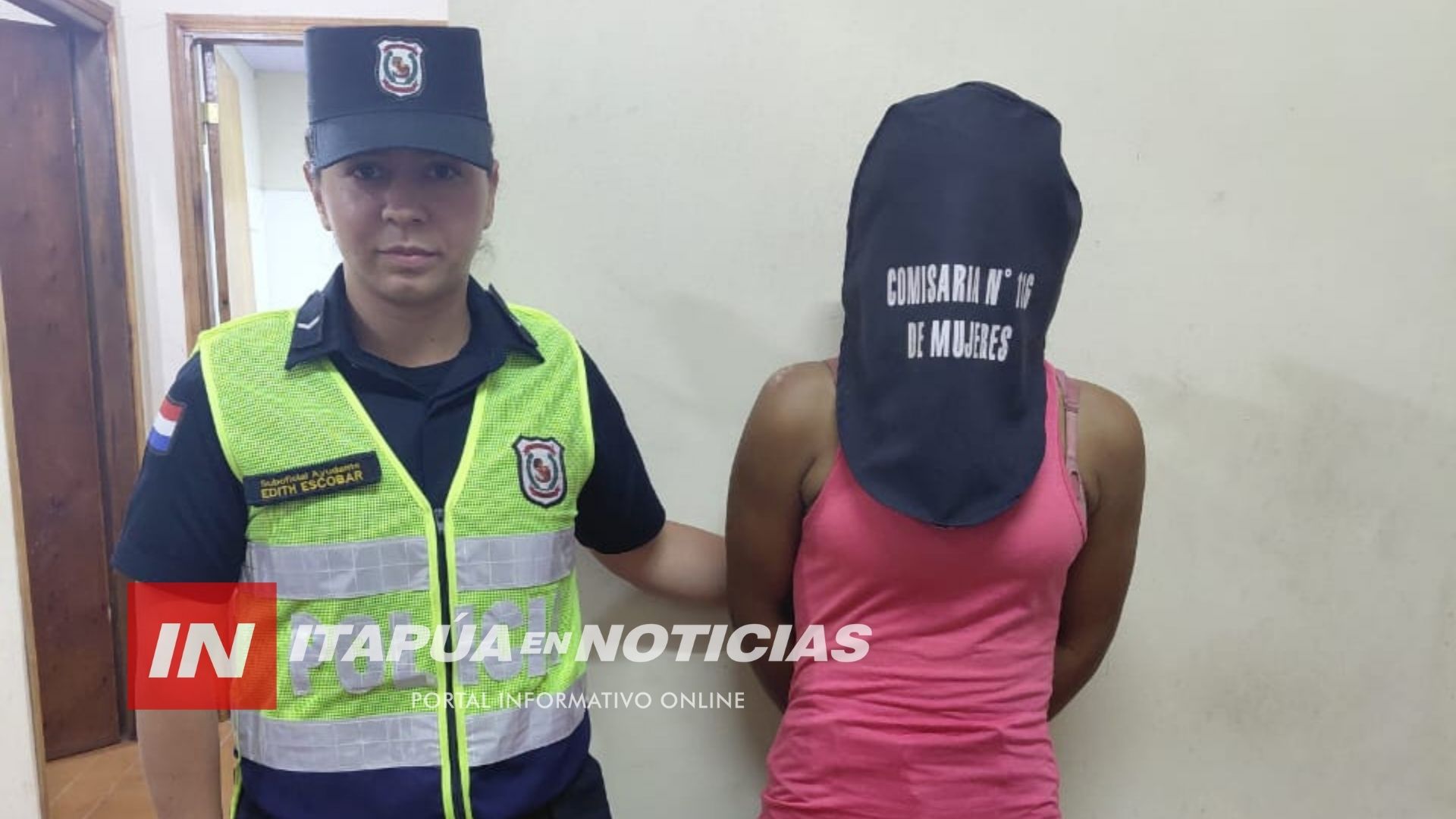 Una mujer de 21 años fue detenida al mediodía de este lunes en la vía pública del barrio Itá Paso de la ciudad de Encarnación, en cumplimiento de una orden de captura vigente por un supuesto hecho punible de hurto agravado.