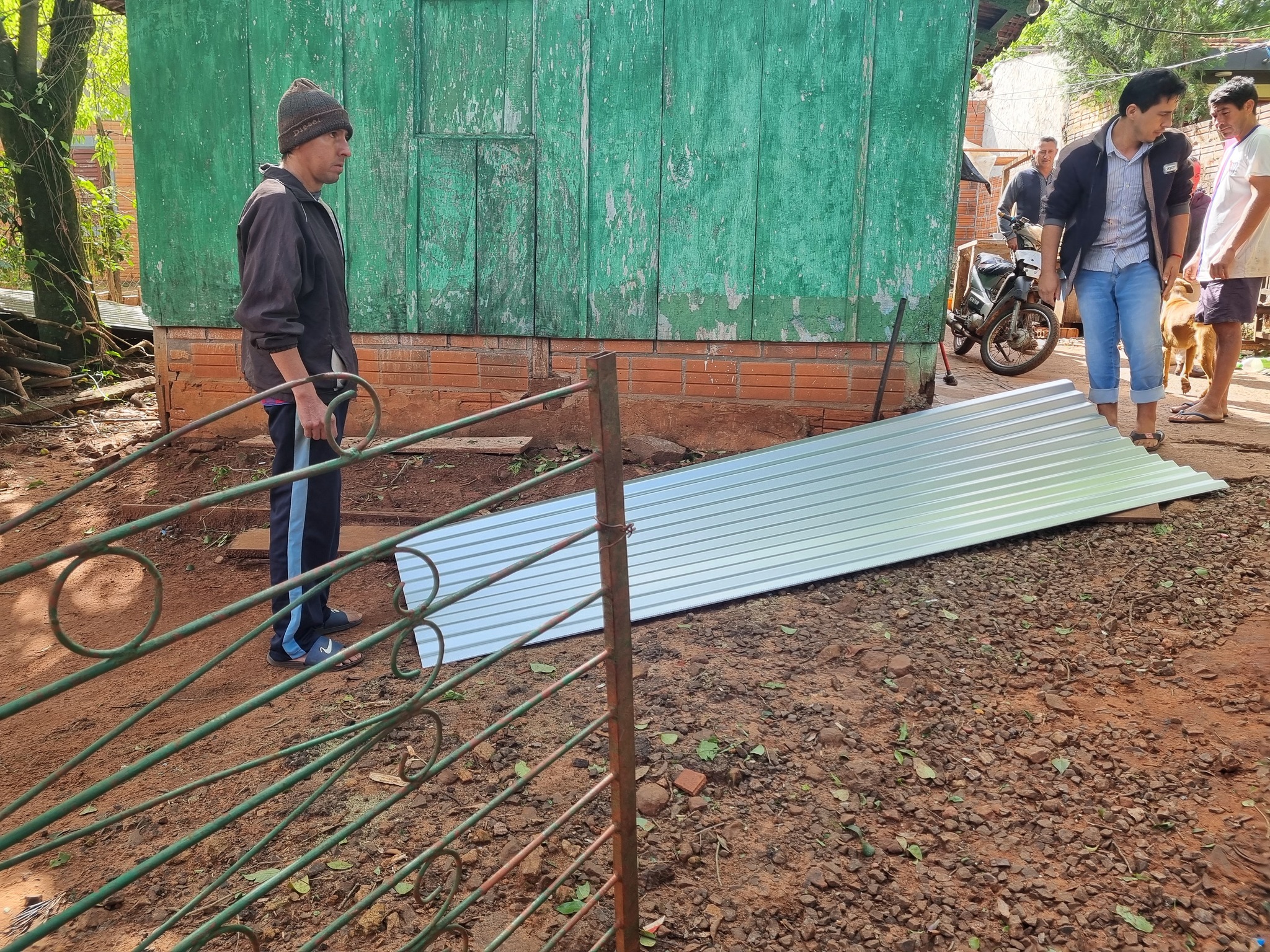 La Municipalidad de Trinidad, bajo la gestión del intendente Isaac Aguilar, brindó asistencia a familias que fueron afectadas por el reciente temporal que azotó la zona, mediante la entrega de chapas para la reparación de sus viviendas.