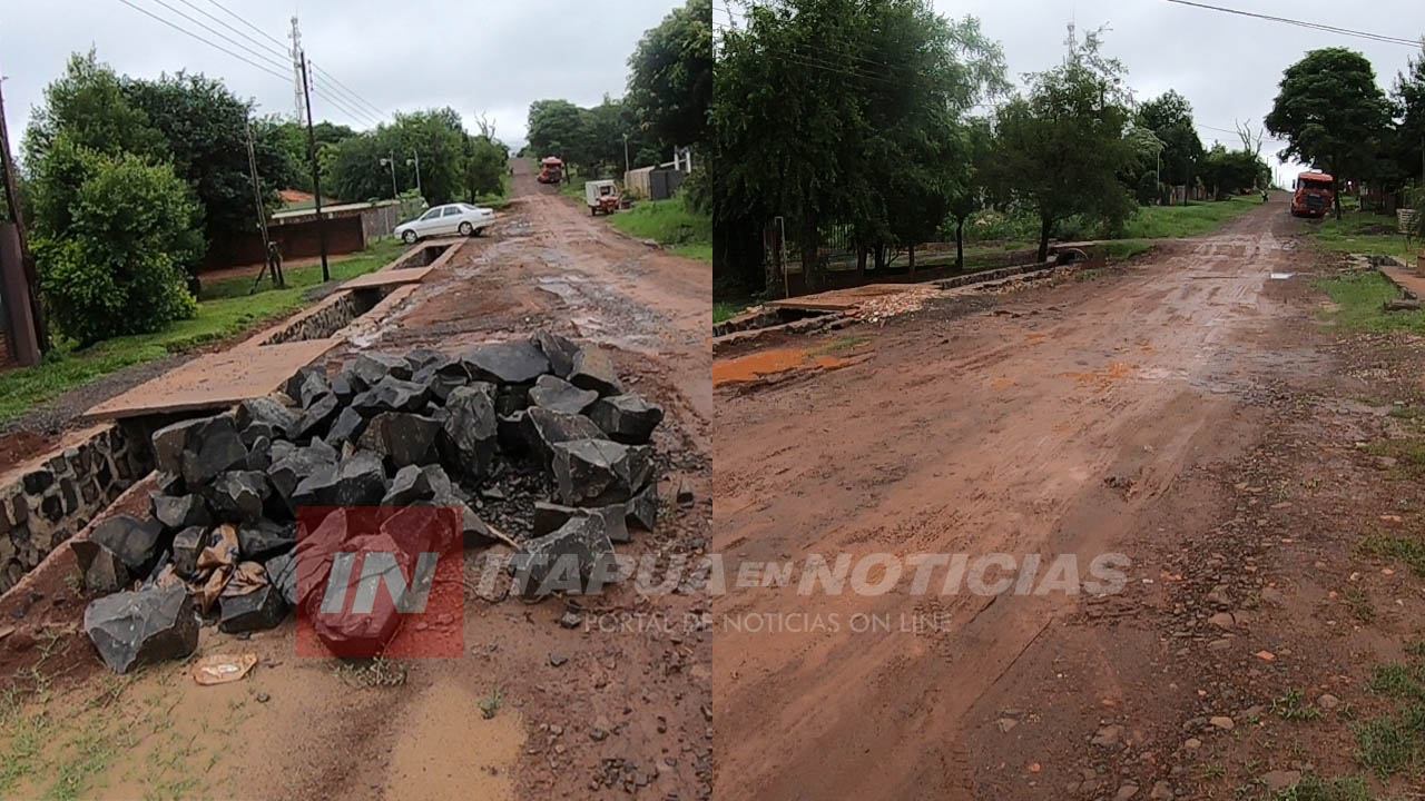Vecinos del Barrio Ka’aguy Rory se quejaron por las obras de canalización que se realizan en dos cuadras del barrio y que han quedado paradas desde hace dos meses, la falta de cabecera en los desagües hace que varios tramos empiecen a desmoronarse, por otra parte, montículos de piedras sobre la calle y zonas de recarga sin compactar se convirtieron en verdaderas trampas para los conductores que circulan por la zona sobre todo en los días de lluvia y durante las noches donde la escasa visibilidad hace propicia que ocurran los accidentes como ya han registrado en estos últimos días.