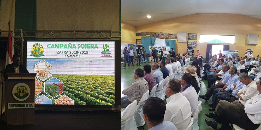 En la mañana de este miércoles se desarrolló el acto de lanzamiento de la zafra sojera 2018-2019, en el predio de Agroshow, en Naranjal, Dpto. de Alto Paraná. La organización de esta actividad corre por cuenta de la Federación de Cooperativas de la Producción (Fecoprod Ltda.), juntamente con la Cooperativa de Producción Naranjal (Copronar Ltda.).