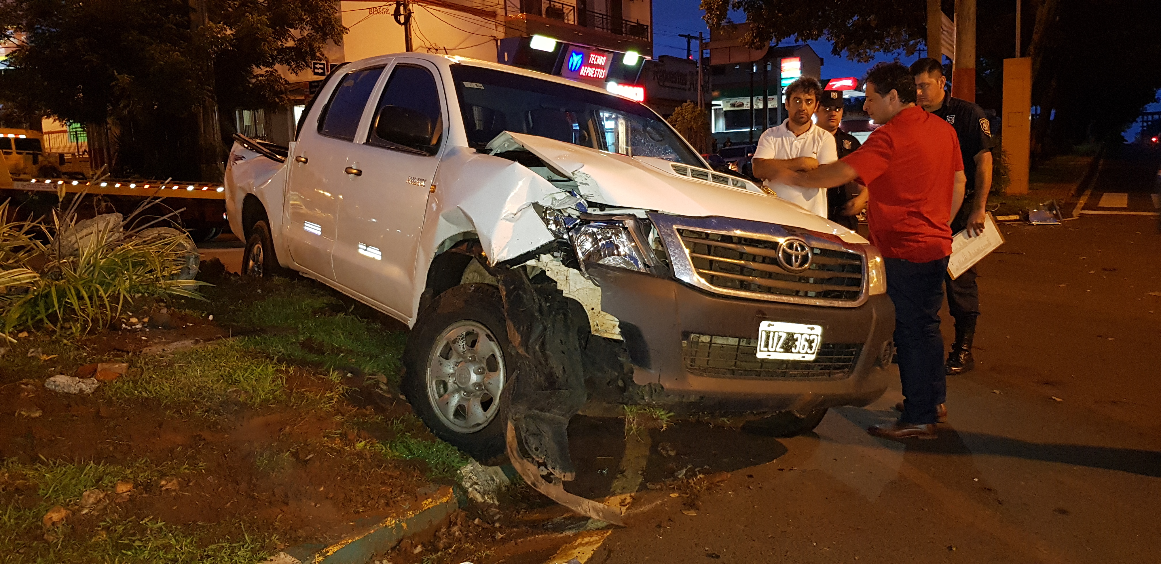 Subió a su camioneta Toyota, modelo Hilux y tomó la Avenida Bernardino Caballero con dirección a la Ruta Nacional 6 pero al llegar a la intersección con la Avda. Irrazabal perdió el control del rodado y terminó subiendo sobre la rotonda e impactando contra la columna del alumbrado público que a consecuencia del choque cayó sobre el rodado. Lacona fue asistido por Bomberos Voluntarios de la ciudad de Encarnación quienes lo derivaron a un centro asistencial sin mayores heridas de consideración. Los efectivos de la Comisaría Primera acompañaron el procedimiento y los agentes de tránsito realizaron el control de alcotest arrojando positivo con 0.93mg. por lo que el caso quedó en manos de la Fiscal María del Carmen Palazón. Afortunadamente el siniestro no involucró a otras personas que pudieron ser víctimas en este hecho que combinó el alcohol con el exceso de velocidad.